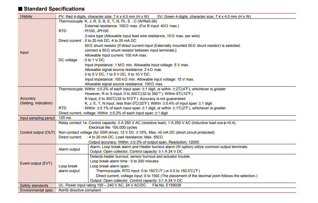 Total 18 types of input and 125 ms of high sampling speed allow you to deal with various processes; Thermocouple (10 types), RTD (2 types), Direct current(2 types), DC voltage (4 types )