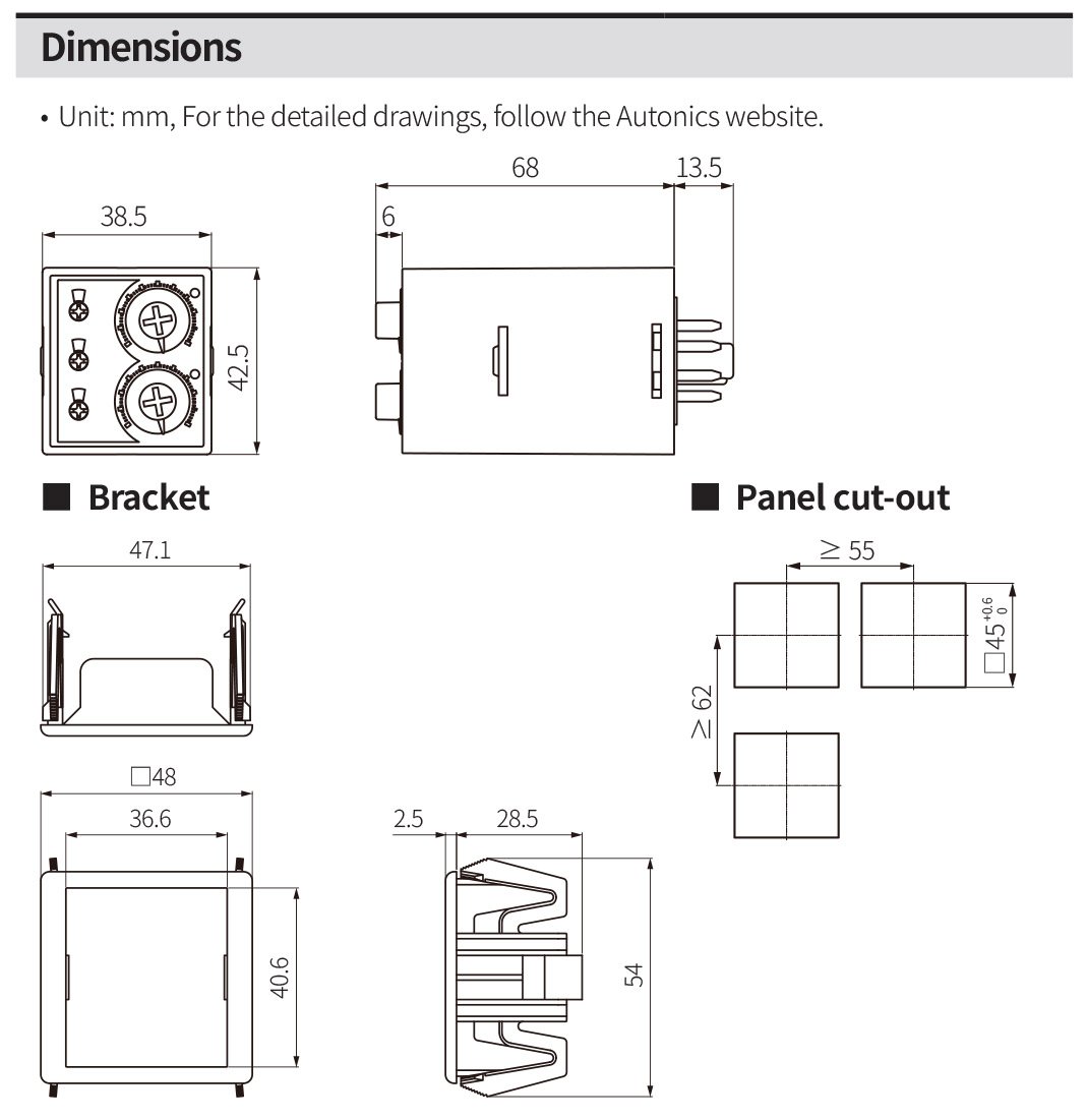 - เอาต์พุตควบคุม: ขีด จำกัด เวลา SPDT (1c): 2 หรือ SPDT ทันที (1c): 1 + ขีด จำกัด เวลา SPDT (1c): 1 ขึ้นอยู่กับโหมดการทำงานเอาต์พุต