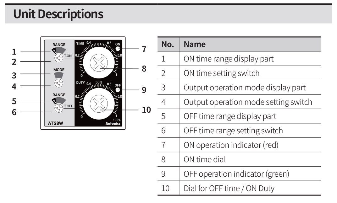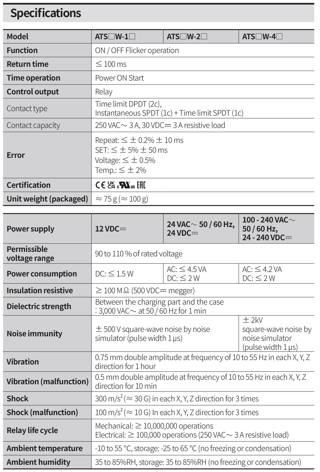 - การทำงานของเอาต์พุต: POWER ON DELAY, FLICKER, INTERVAL