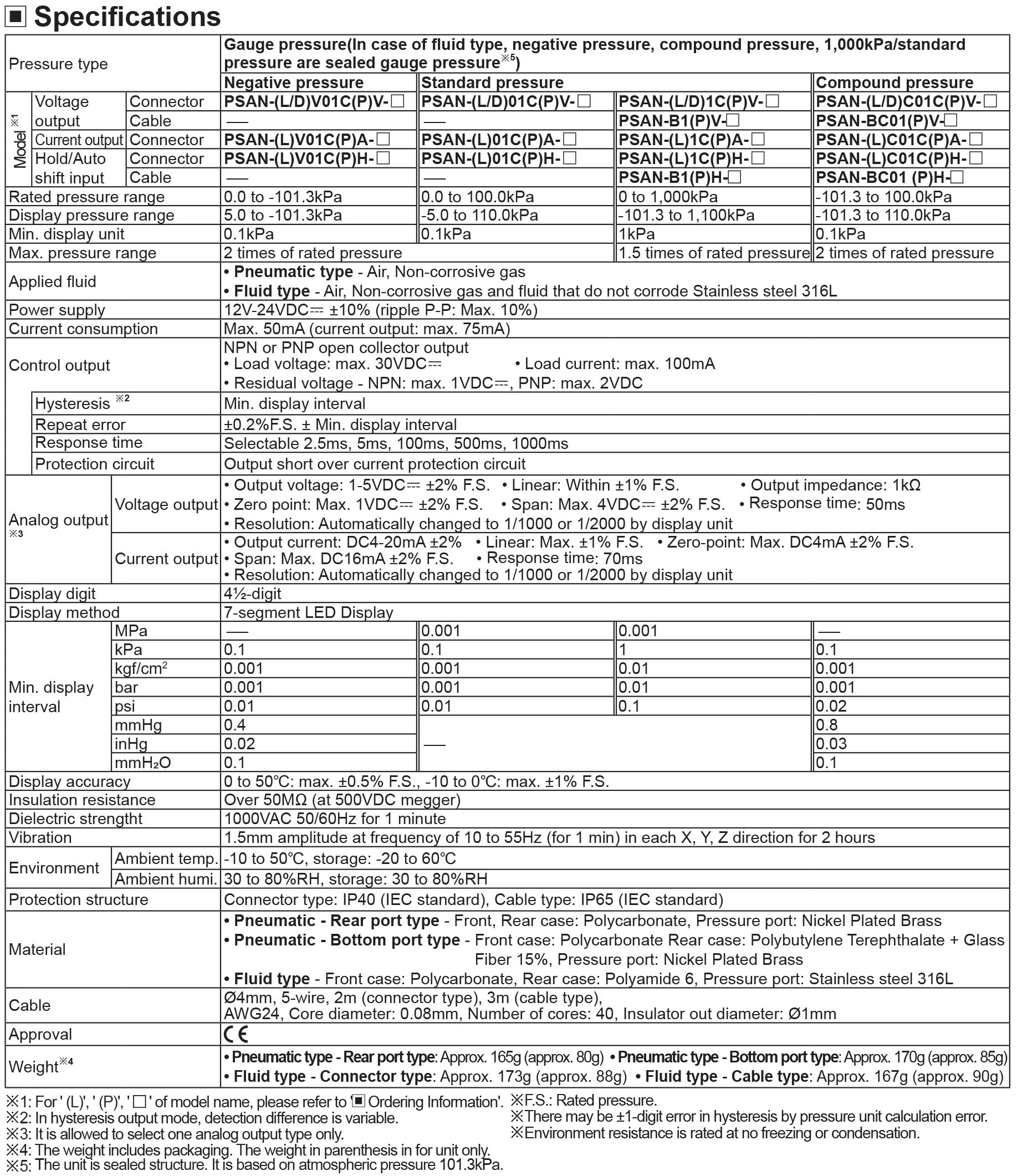 • - หน่วยความดันจอแสดงผล : MPa, kPa, kgf / cm², บาร์, psi